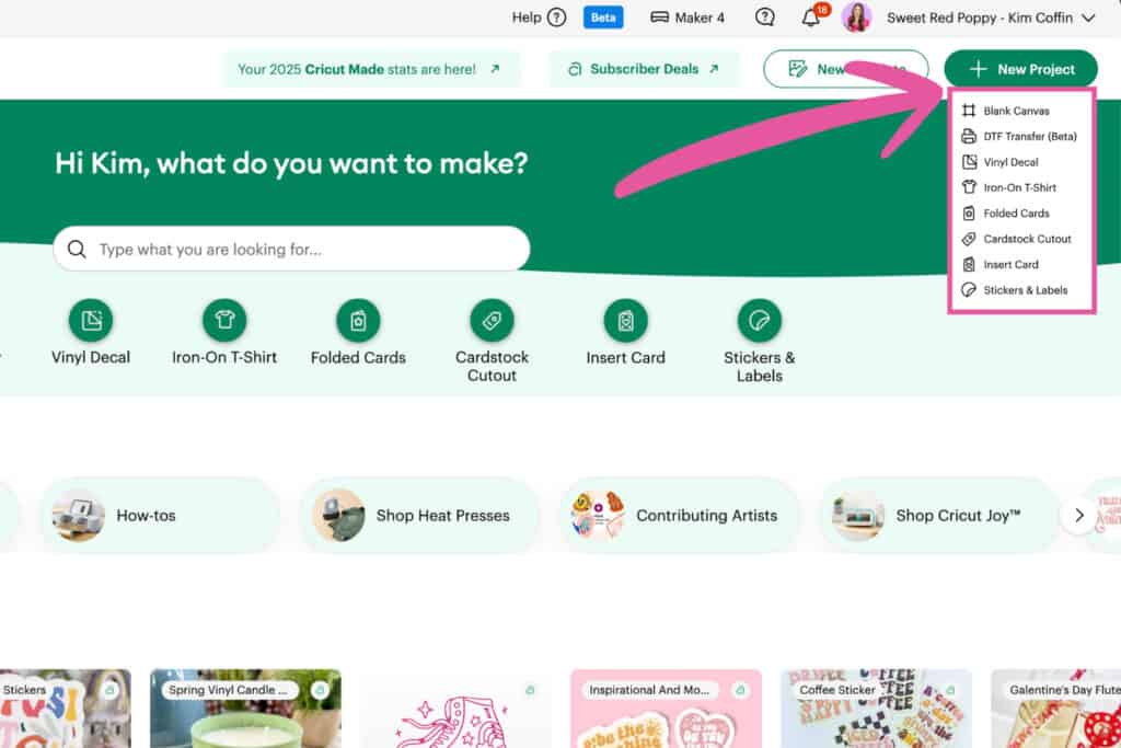 In Cricut Design Space, click "New Project" and select "Blank Canvas" from the dropdown menu.