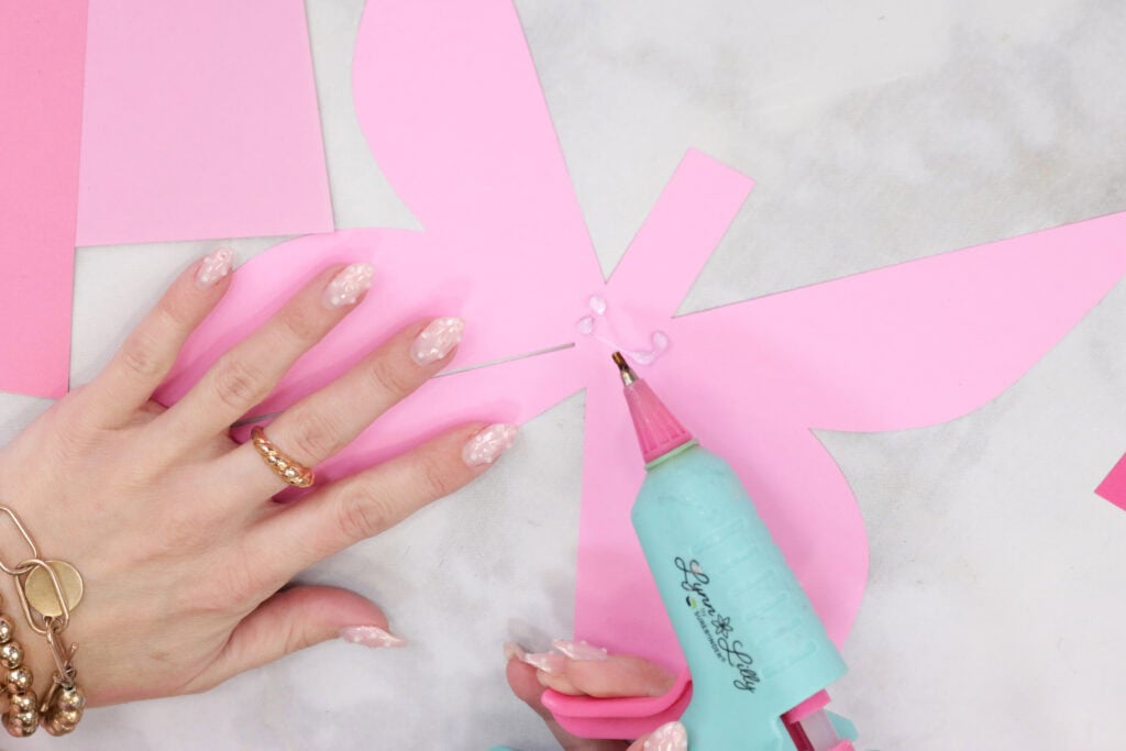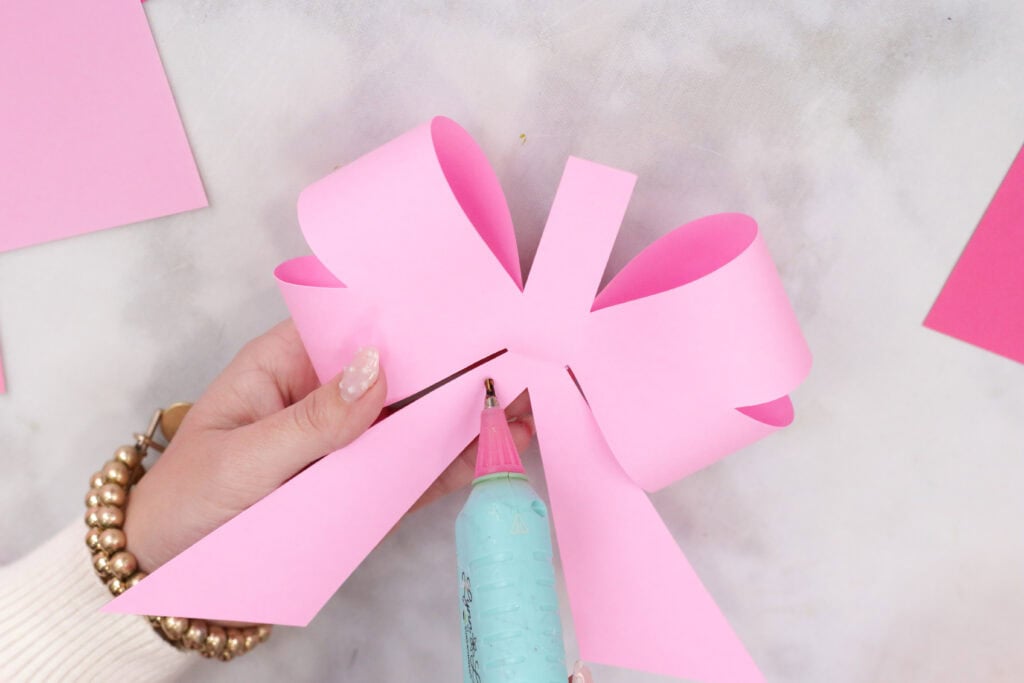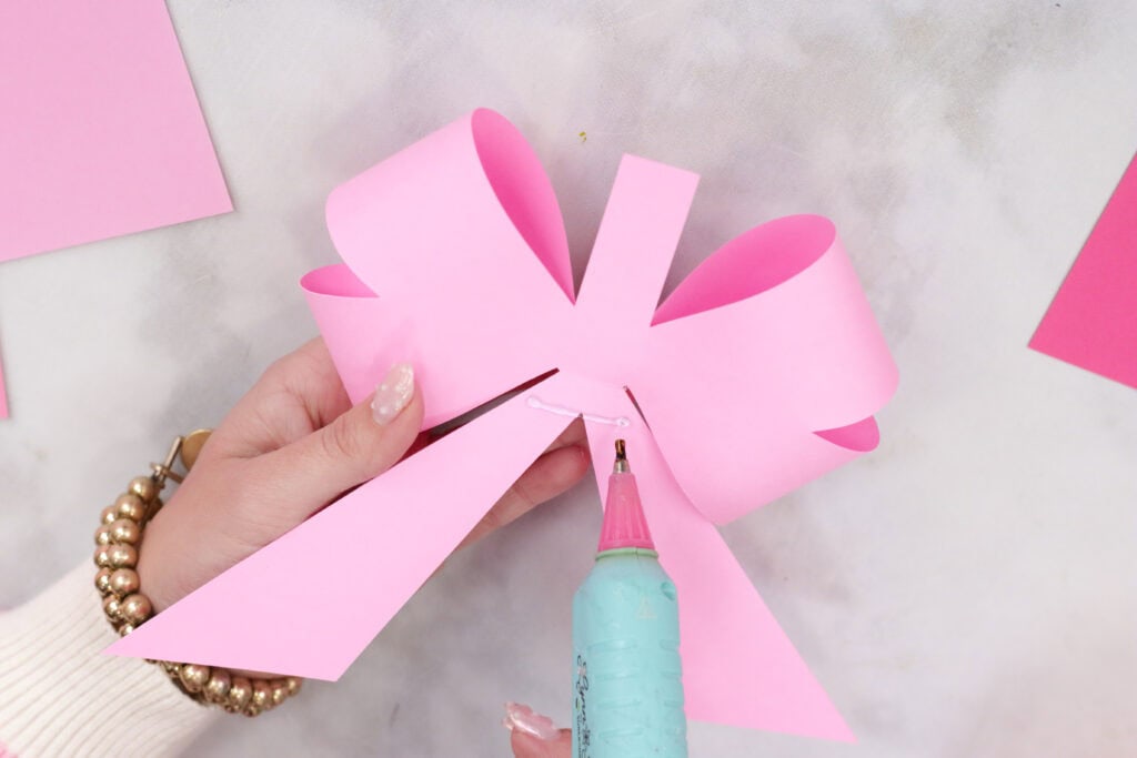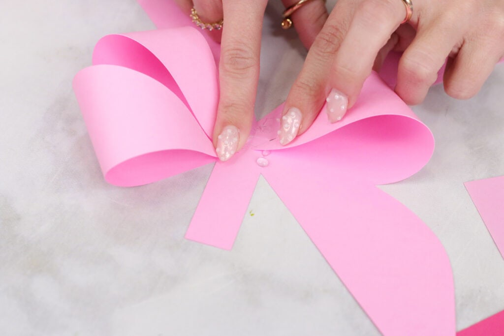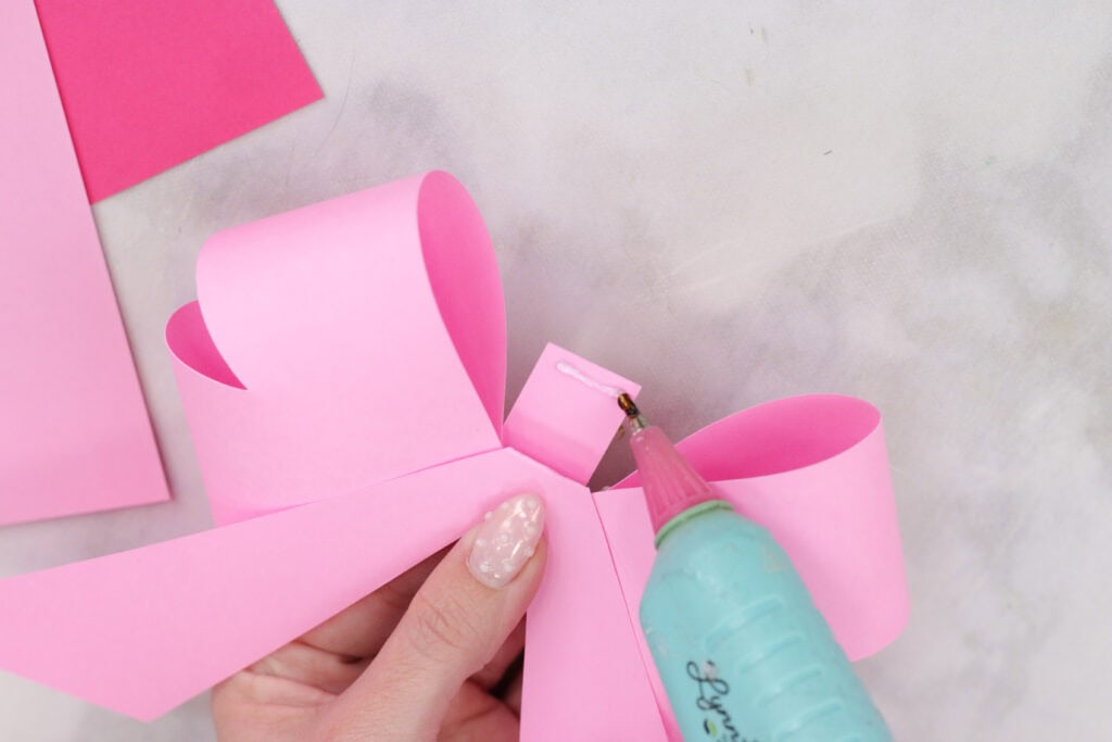 When assembling the bows, I used a hot glue gun to keep everything together, but you can also use a tacky glue. My favorite glue to use for paper projects is Bearly Arts Glue.