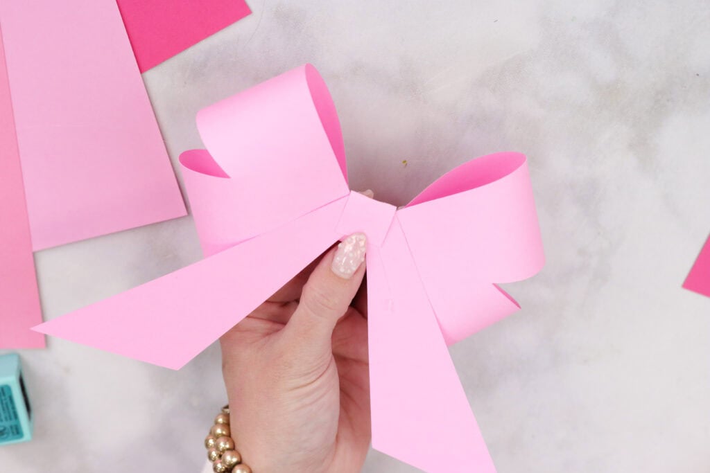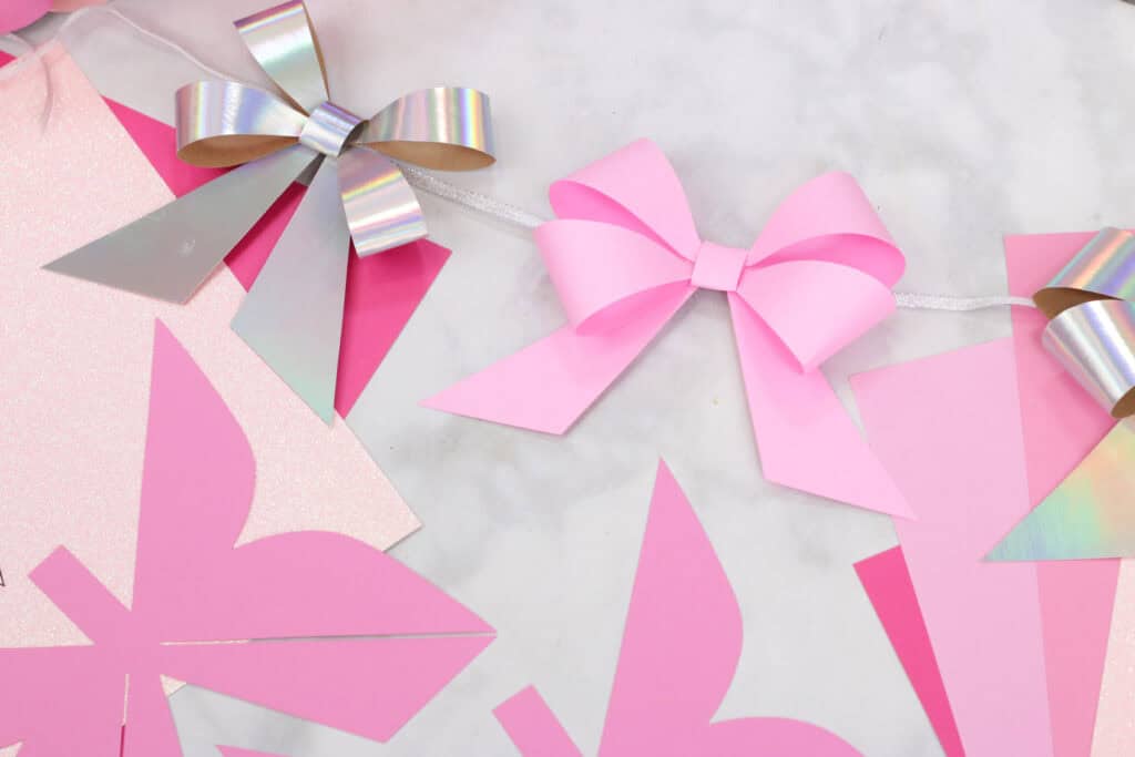 Tip: For two bows to fit on a sheet of 12 x 12-inch cardstock, shrink the width of the bows to 6.8-inches to create a cute bow garland. Feel free to cut multiple that vary in size and color.